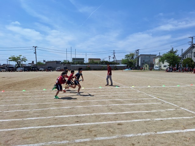 運動会に向けて、リレー練習を行いました。さすが上学年の走り! 本番での走りが楽しみです(*^^)v
