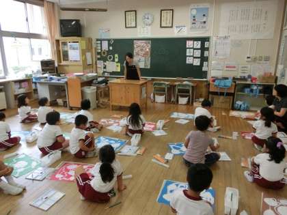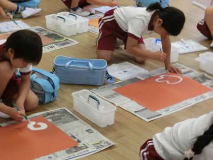 絵の具を使うのもこれまであまりなかったので、子どもたちも興味津々。