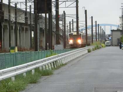 線路脇を歩いていると、ちょうど水郡線の下り列車が。