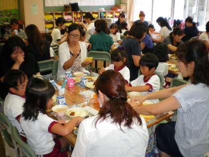 保護者の方全員が参加され、子どもたちと一緒に給食を味わいました。