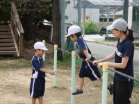 1年生の体力テストで、やさしく、ていねいに教えてくれた6年生! 1年生は、6年...