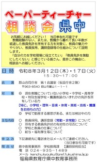 福島県教育庁県中教育事務所より、ペーパーティーチャー相談会のお知らせがありまし...