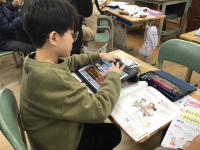 箏の演奏体験をした4年生は、日本の音階のよさを感じ取りながら旋律づくりに取り組みました。 タブレットを使って、上がったり、下がったり、下がってから上がったり・・・いろんなパターンの創作活動を楽しんで...