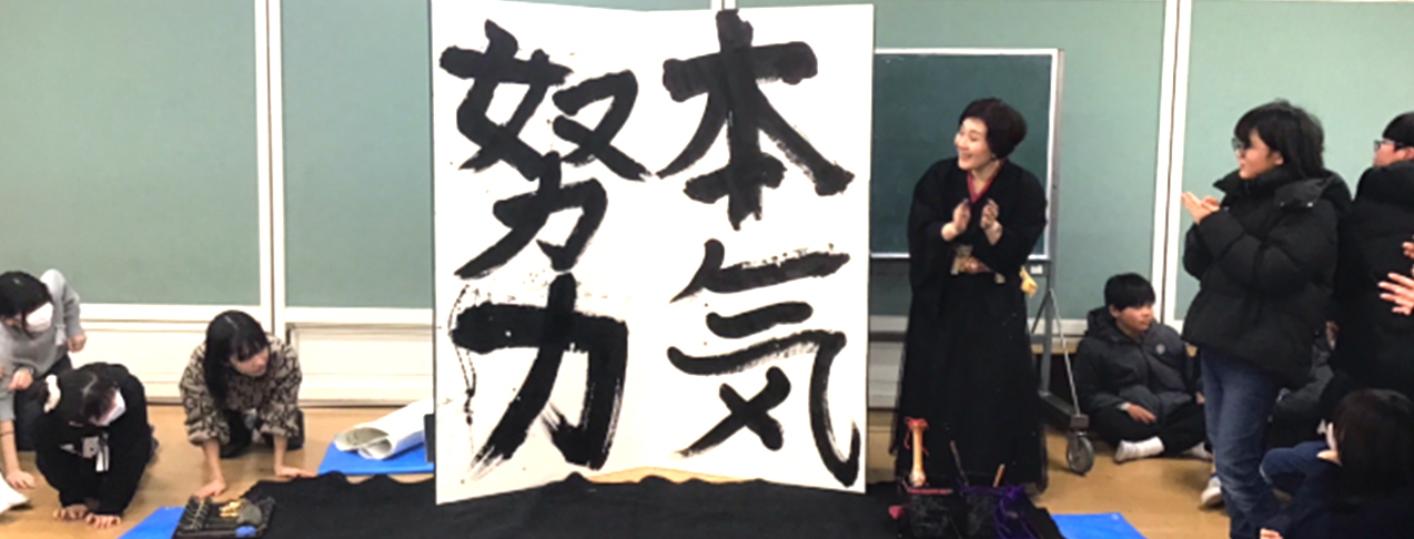 9日(月)に講師の先生に来ていただき、「書道の魅力」について学びました。目の前で迫力ある書道のパフォーマンスを見ることができました。また、自分たちで一人一画ずつ担当して字を書いたり、各クラスで考えた言...