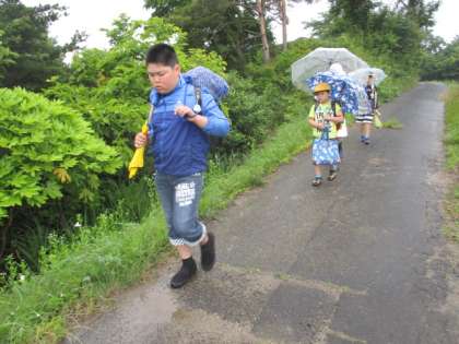 今朝の登校の様子です。地域の方に元気にあいさつをしました。