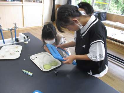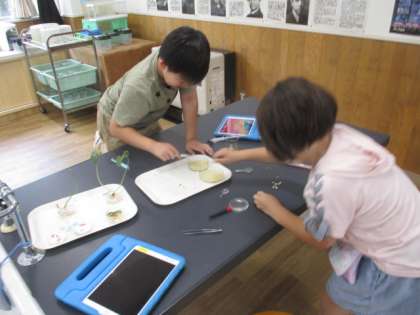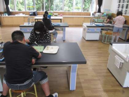 5年生の理科です。ヨウ素液を使って実験を行っています。