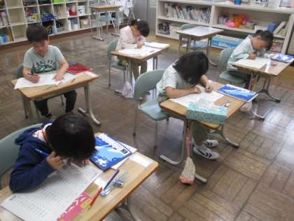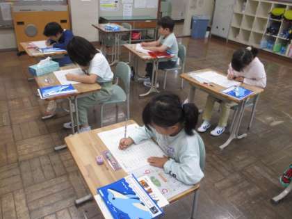 今日の授業の様子を一部お届けします。1年生の算数です。足し算の計算問題に取り組みました。