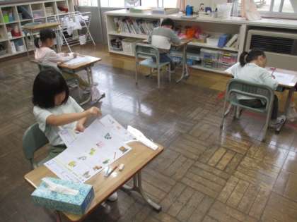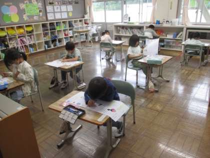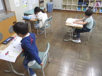 1・2年生は、単元テストに取り組んでいます。