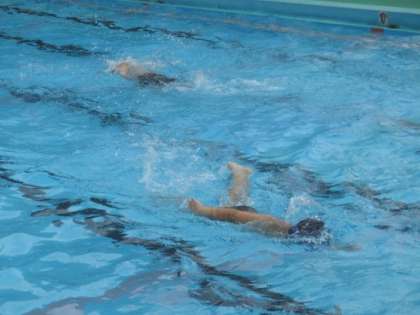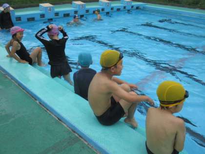 全校児童で水泳の授業を行いました。