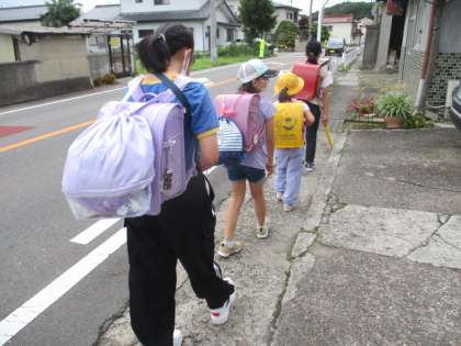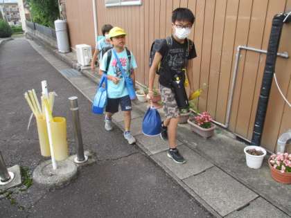 今朝は小雨が降ったためか、湿度が高く感じられました。子どもたちは地域の方に「おはうございます」と元気にあいさつしていました。