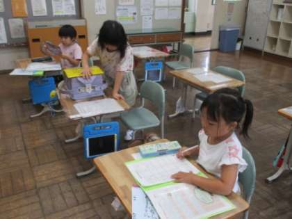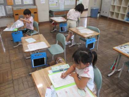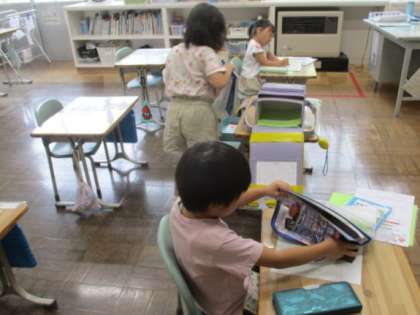 帰る用意をしています。
