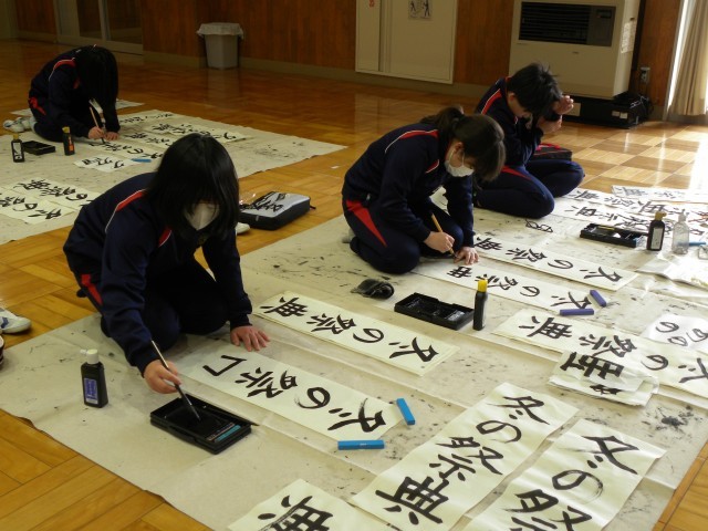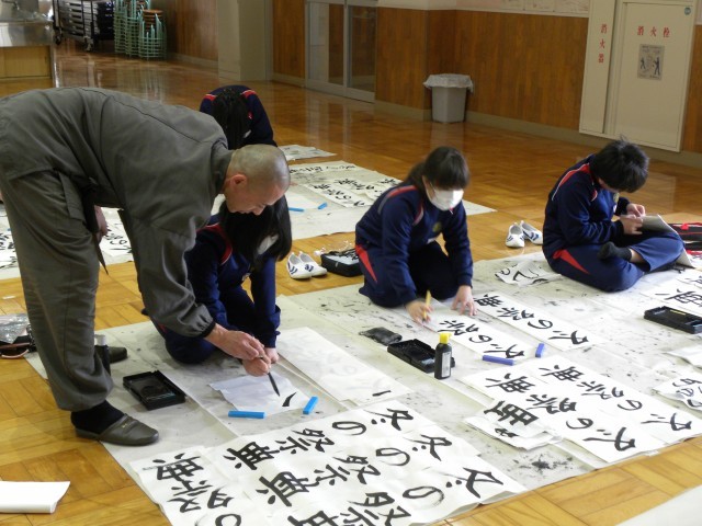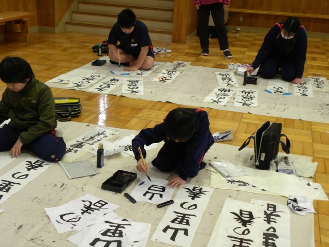 昨日に引き続き、神宮寺ご住職の熊田秀海さんにお越しいただき、5・6年生が書きぞめの指導を受けました。2時間集中して書くことができるのは、さすが5・6年生だとのお褒めの言葉をいただきました。今日学んだことを冬休み中の練習に生かしてほしいと思います。