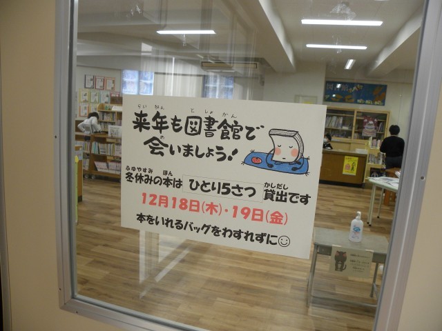 冬休みの本の貸し出しが始まりました。学校司書の先生がいらしてくださっているので、多くの学年が本を借りにきていました。本には、自分の生き方を変えてしまうような力があります。ぜひそんな本に出合ってほしいと思います。
