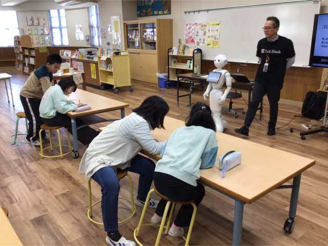 今日は、ソフトバンクの方が講師として来校され、ペッパー君を使った情報に関する授業を行ってくださいました。1・2年生には、ペッパー君が動くのは「プログラム」をして命令をしているからということを中心にお話くださいました。3年生以上には、スマートフォンを使って撮影した動画をアップロードしたら「炎上」した話を題材に、どうすれば防げたかを具体的に考える授業を行ってくださいました。ICTはどんどん進化しており、子どもたちにとっても決して他人事ではない話です。学んだことをこれからの生活にいかしてほしいと思います。