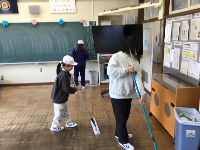 今日は、今年度の縦割り班清掃の最終回でした。力を合わせて広い校舎をきれいにしようと取り組む姿に感心させられます。最後は6年生にお礼を言って終わりました。