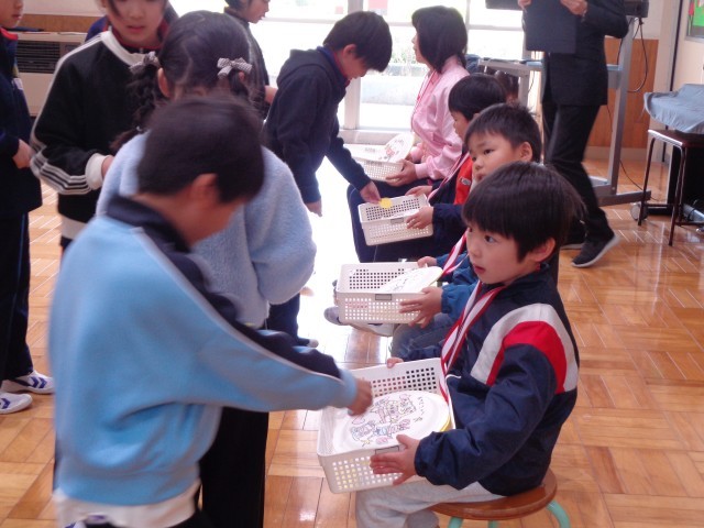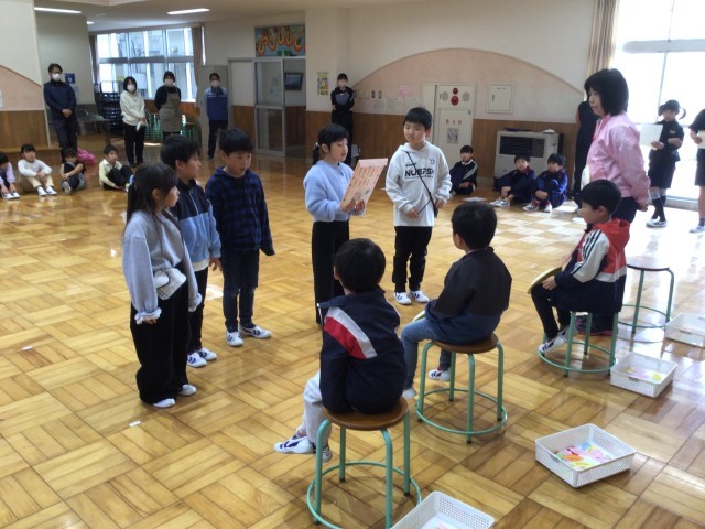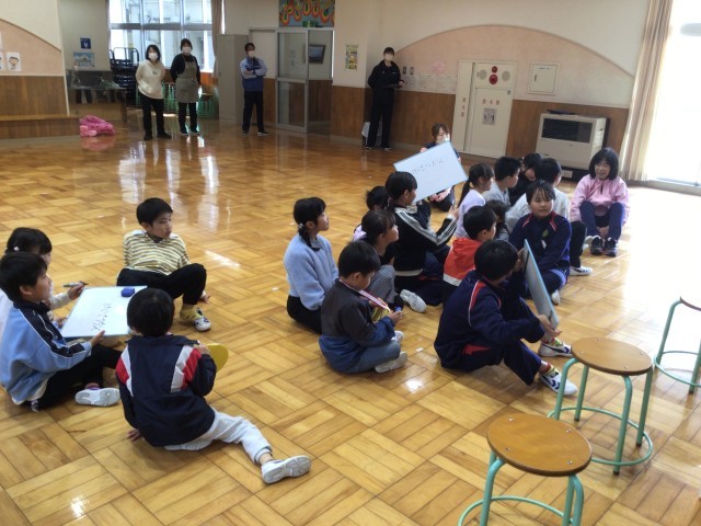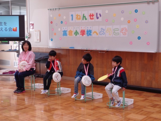 今日は1年生をむかえる会がありました。1年生を拍手でお迎えしたあと、「なかよくなろうタイム」では、「名前しょうかい」「高倉小クイズ」「ジェスチャーゲーム」などをして楽しみました。2年生からはプレゼントが渡されました。みんな笑顔が見られてとてもうれしく思いました。準備をしてくれた上級生のみなさんもありがとうございました。