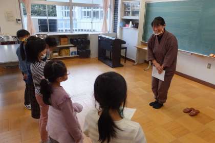 品竹先生に「言葉」の大切さを教えていただきながら、3年生は生き生きと方言による「語り」を学びました。