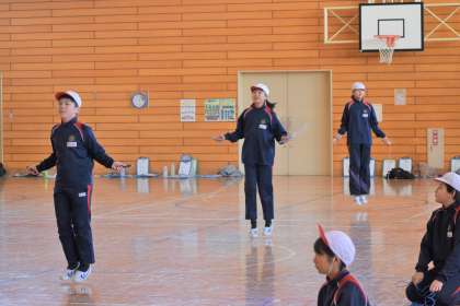最初のの種目は「持久跳び」。学年×1分が目標タイムです。つまり、6年生は6分。ただジャンプするだけでもきついことですが、なわとびをしながらとなると難易度は一層上がります。