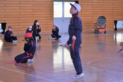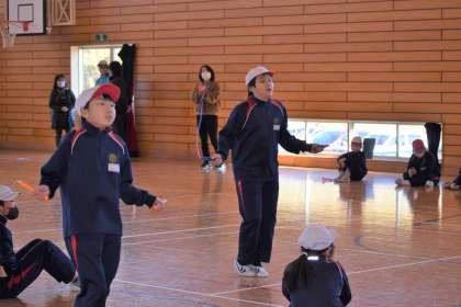 静寂の中、5・6年生の持久跳びが始まりました。なわとびが床をはじく音と応援の手拍子だけが、体育館にこだまします。6年生にとっては、小学校生活、最後のなわとび記録会。成し遂げようという思いは一層強かったと思います。跳び終えた景色は、跳び終えた者にしか見えません。その景色を見るため、子ども達は真剣に跳び続けました。