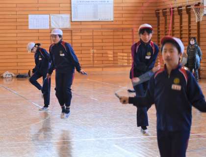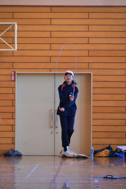 トップバッターの5・6年生は圧巻でした。「ヒュヒュヒュン、ヒュヒュヒュン」と、高速で回転する縄の音が体育館に鳴り響きました。相当体力も使いますが、その集中力に驚くばかりでした。