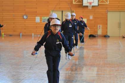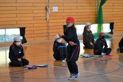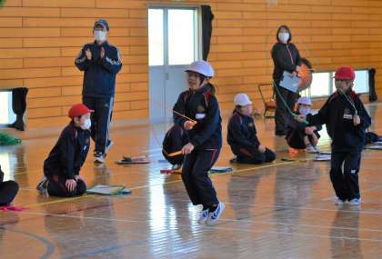 2月5日 5・6年生に続いて、1〜4年生が挑戦します。中学年のこの時期は、リズム感や手具操作など、神経系の運動能力がぐんと伸びる時期です。写真ではそのパワフルさを伝えきれないのが残念ですが、力強いジャンプに大きな成長を感じました。
