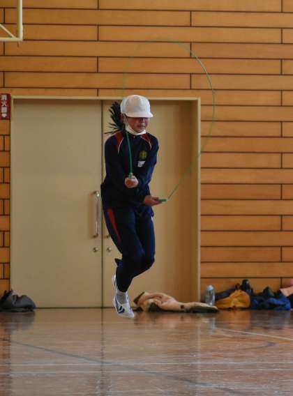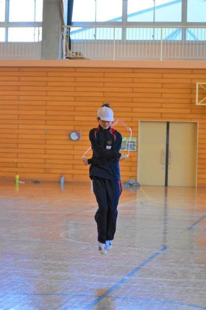 トリを飾ったのは、やはり6年生。滞空時間の長い軽やかな後ろ二重あや跳び(いわゆる「後ろはやぶさ跳び」)をミスなく連続で跳びきることができました。