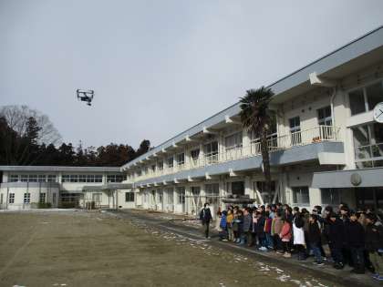 一昔前、航空写真と言えば、校舎上空を航空機が通り過ぎ、撮られた感のないまま終わるという思い出があったのですが、時代はハイテク!今はドローンでの撮影です。