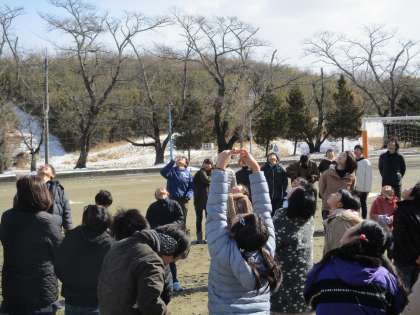 2月9日 今日は航空写真の撮影日になっていました。撮影時間になっても雪が舞う悪天候だったのですが、日頃の行いがよいたかくらっ子のおかげで、晴れ間が出てきました。さすが、天気の子。