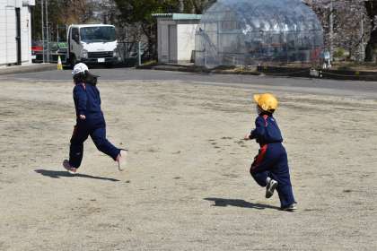どうやら鬼ごっこをして遊ぶようです。温かな太陽のもと、力いっぱい体を動かす子ども達。今年もまた、学年を超えて楽しくふれ合うことを願いました。