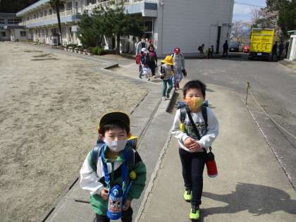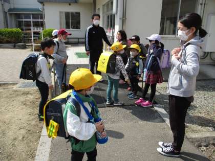 1年生については、4月の間は、途中まで教職員が一緒についていき下校指導をします。途中までお迎えに来ていただく保護者の方もいるかと思いますが、安全面に十分な配慮をする上でも、ご協力よろしくお願いいたします。
