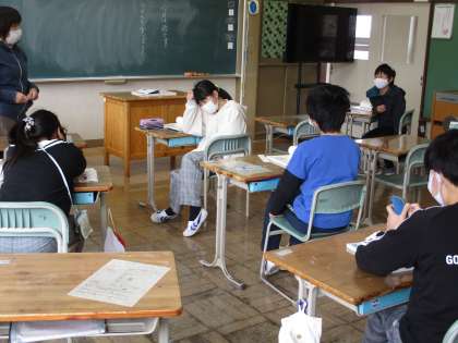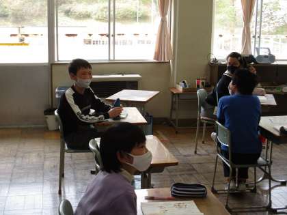 4月9日 6年生が全員で文章作りをしていました。はじめに、ランダムに文章を選びます。その後、一人一人が文をつなげていきます。最後の文章も決まっているので、よく考えて文章をつないでいかないとうまくつながりません。時々、無理やりな展開になることもあって、それもまたおもしろいところです。