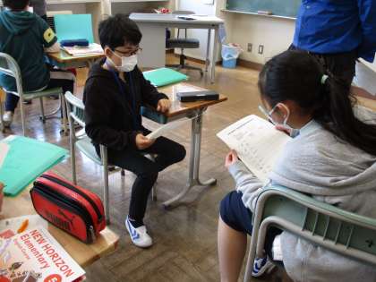 4月22日 5年生の外国語科は「自己紹介インタビュー」。ペアになって、質問をしあっていました。
