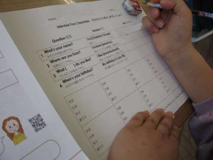 4月22日 6年生は、クラスメイトインタビューを通して、What,Where,Whenを使った疑問文を学習していました。