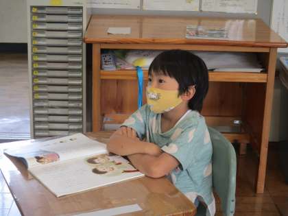 2年生は、不公平な行動をとってしまった登場人物の気持ちになって考えていました。この「気持ちを考える」という学習は、積み重ねが欠かせません。1年生は「気持ち」を自分の言葉で表せるようになってきました。