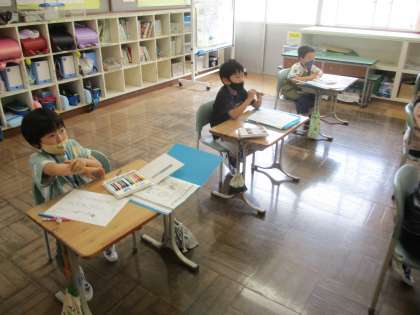 と、この○○の中に入れる言葉を英語で話しながら、何度もフレーズを繰り返しました。低学年のうちから、ネイティブの発音に触れることで、耳を育てています。