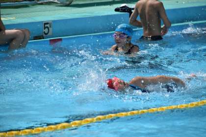 クロールをがんばる子、息継ぎ練習に励む子、平泳ぎや背泳ぎなどいろいろな泳法に挑戦する子。それぞれに目指すところは違いますが、目標達成に向けての意欲はみなしっかり持っています。
