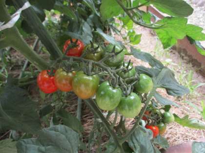 7月7日 徐々に赤くなるミニトマト。日が出れば一気に色づきそうです。
