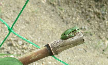 そんなアサガオを横目に、ちょっと一休みのアオガエルでした。
