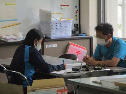 7月7日 今日は「体育の先生」の来校日でした。先生方は、なんの打合せもなく授業はしません。来週の授業について話し合っているようです。