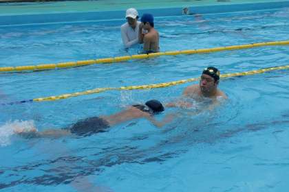 スクールの先生からは、「腕をゆっくり、大きく、動かして水をかく」ことを意識して泳ぐようアドバイスをいただきました。子ども達の上達は早いもので、この3回の「水泳教室」で、泳ぎがみるみる上達しました。