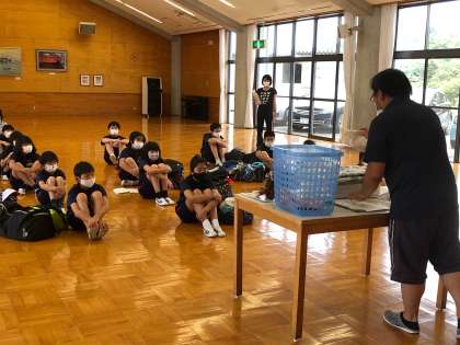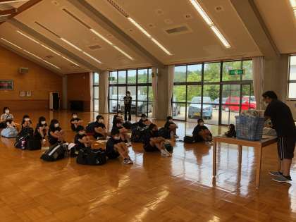 7月12日 出会いのつどいでは、しっかりとあいさつをしたり、自然の家の先生方の説明を真剣に聞いたりと立派な態度でした。