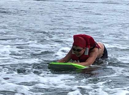 7月12日 …慣れが速い!あっという間に、波乗りを楽しみ始めました。