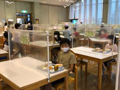7月12日 コロナ対策のため、席は離れています。テーブル前面には、飛沫対策もしてあって安全安心です。