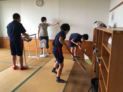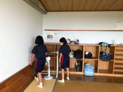 7月13日 朝食前に部屋のお掃除をがんばりました。ここで、いつもの掃除力発揮です。お掃除は、たかくらっ子にお任せですね。隅々まで丁寧に掃除をしていました。