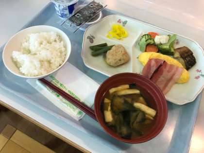 7月13日 朝食はご飯とパンから選べます。ざっと見渡したところ、高倉小は、ややパン派が多いようです。