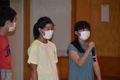 7月13日 1班のスタンツには、火の神様から「ナイスクイズ賞」が贈呈されました。おめでとう!
