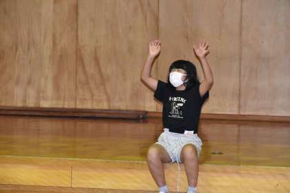 7月13日 3班のスタンツには、火の神様から「マジョガミ賞」が贈呈されました。おめでとう!