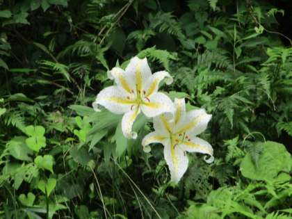 7月14日 宿泊学習から帰ってきた5・6年生を待っていたかのように、一斉に花が開きました。校庭南側のヤマユリは今日の朝に咲いたようです。