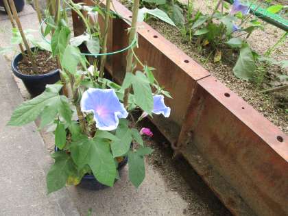 1年生が育てているアサガオや用務員さんが植え替えてくれたヒマワリも、大輪の花を咲かせています。