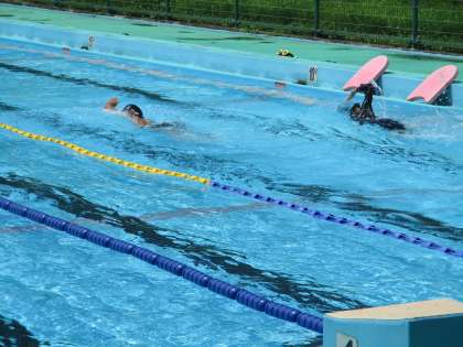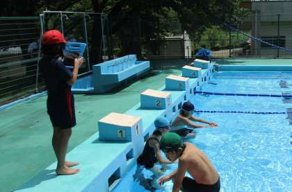 4〜6年生を見ていると、まさに「チーム」なのだと思います。4年生で25メートルを泳げるようになった子もいます。先輩と一緒に練習することが、よい影響を与えたのかもしれませんね。この「チーム」が、明日、どんな記録を出すか楽しみです。